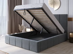 Produkty tej serii nadadzą pomieszczeniu luksusowego charakteru. Atuty podnoszony pojemnik na pościel wytrzymały stelaż elastyczny na metalowej ramie stabilna konstrukcja wysokiej jakości materiały obiciowe - tkanina Davis Soro unikatowy design możliwość wyboru koloru tkaniny Najważniejsze funkcje Stabilna konstrukcja Stabilna konstrukcja, metalowa rama stelaża i elastyczne listwy zapewniają stabilność i trwałość, gwarantując spokojny sen. Praktyczność w sypialni Wbudowany stelaż na podnośnikach gazowych o mocy 80 N z pojemnikiem na pościel sprawia, że utrzymanie porządku w sypialni staje się łatwe i efektywne. Elegancja z charakterem Pionowe przeszycia dodają łóżku unikalnego charakteru, tworząc efektowny mebel, który wyróżnia się w każdej aranżacji. Niezrównana wygoda Dzięki solidnemu stelażowi, doskonałemu wsparciu dla kręgosłupa oraz miękkości tkaniny Davis Soro, to łóżko zapewnia wyjątkową wygodę podczas snu i relaksu.