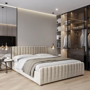 Łóżko tapicerowane z pojemnikiem SFG0160 180x200 Welur Beżowy #03