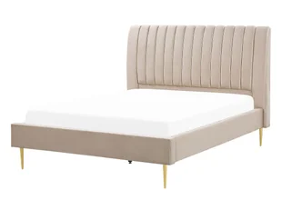 Eleganckie łóżko w kolorze beżowym wykonane z wysokiej jakości aksamitu. Dla każdego, kto ceni jakość i piękny design! Estetyczne łóżko wykonane z wysokiej jakości aksamitu z solidną ramą z listew pozwala na głęboki relaks po długim dniu. Oferuje wszystko, czego potrzebuje łóżko: jest wygodne, eleganckie i praktyczne - to pozycja obowiązkowa w Twojej sypialni. Szczegóły: Typ: Łóżko podwójne Styl: