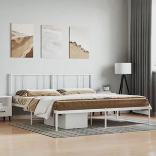 Metalowa rama łóżka z wezgłowiem, biała, 200x200 cm Lumarko!