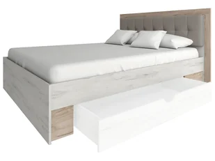 Połączenie kolorów dąb craft szary i dąb craft biały wygląda bardzo stylowo i spokojnie. Meble wykonane są z wysokiej jakości płyty wiórowej (DTD) o grubości 16 mm. Krawędź ABS wynosi 0,5/1. Ponadto łóżko można zakupić ze schowkiem, z którego z pewnością natychmiast skorzystasz. Do łóżka dołączony jest ruszt z listew w metalowej ramie.