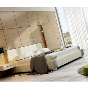 Eleganckie łóżko tapicerowane utrzymane w konwencji minimalistycznej.