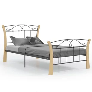 Ciesz się dobrym snem dzięki tej ramie łóżka! Rama łóżka charakteryzuje się solidną konstrukcją z malowanego proszkowo metalu i litego dębu, dzięki czemu jest bardzo mocna i trwała. Wytrzymałe listwy oferują potrzebne podparcie i wygodę. Łóżko to pozwoli Ci porządnie się wyspać każdej nocy! Prosimy mieć na uwadze że, przesyłka obejmuje tylko ramę łóżka, materace nie są dołączone. Pasujące materace można znaleźć w naszym sklepie. Kolor: czarny i jasne drewno Materiał: