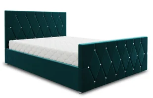 Najważniejsze cechy łóżka Diamare : Ozdobne pikowania z kryształowymi guzikami – efektowny i luksusowy wygląd. Stabilna konstrukcja zapewniająca trwałość i wygodę na lata. Praktyczny pojemnik na pościel, koce i akcesoria sypialniane. Stelaż z elastycznych, drewnianych listew wspierający naturalną pracę materaca.