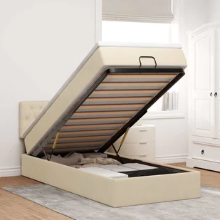 vidaXL Łóżko otomana z materacem, kremowe, 100x200 cm, tkanina