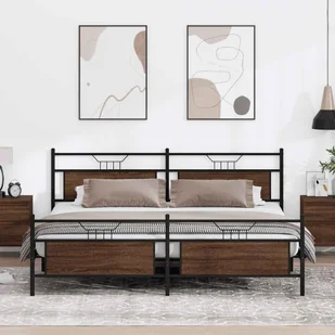 Metalowa rama łóżka, bez materaca, brązowy dąb, 193x203 cm Lumarko!