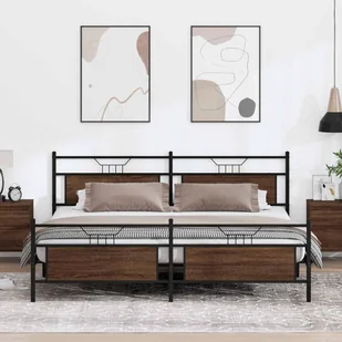 Metalowa rama łóżka, bez materaca, brązowy dąb, 200x200 cm Lumarko! Lumarko!