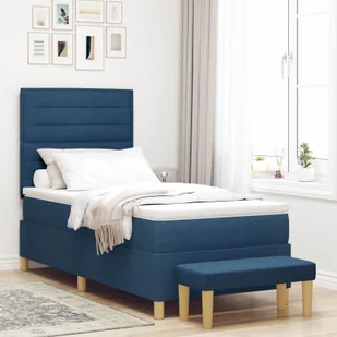 VidaXL Łóżko sprężynowe z materacem Niebieski 90 x 200 cm tkanina