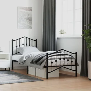 vidaXL vidaXL Metalowa rama łóżka z wezgłowiem i zanóżkiem,czarna, 80x200 cm