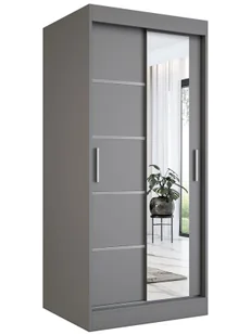 Duże lustro na froncie szafy optycznie powiększające przestrzeń. Uniwersalny design dopasowany do różnych aranżacji i wielu pomieszczeń: sypialni, pokoju młodzieżowego, przedpokoju, czy salonu. Dwa układy wnętrza do wyboru: Lato (2 drążki) i Zima (1 drążek), z kompletem elementów potrzebnych do obu konfiguracji.