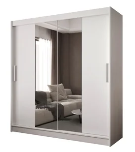 Materiały, które zapewniają trwałość na lata Solidna płyta meblowa – trwałość na lata i łatwość w utrzymaniu czystości. Wysokogatunkowe lustro podwójnie hartowane, wyróżniające się ponadprzecietną wytrzymałością. Wytrzymałe okucia, które zapewniają płynne przesuwanie drzwi nawet przy intensywnym użytkowaniu. Wymiary: szerokość: 180 cm, wysokość: 215 cm, głębokość: