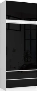Fabryka Mebli Akord SZAFA Z NADSTAWKĄ S 90 cm 2 DRZWI 2 SZUFLADY BIAŁA / CZARNY POŁYSK