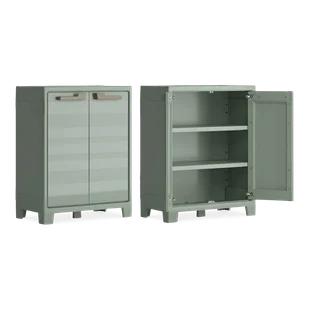 ta ogrodowa szafka ma dwie półki z możliwością przestawiania, co czyni ją idealnym połączeniem praktycznej formy z funkcjonalnością. Tylna ściana z polipropylenu: tył tej szafki wykonano z arkuszy polipropylenowych. Dużą zaletą w porównaniu do płyt kartonowych jest to, że polipropylen nie chłonie wody. Łatwość montażu: