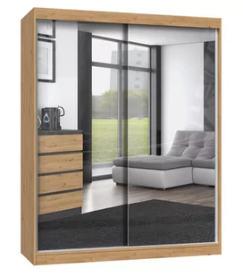 DĄB ARTISAN PRODUKT: Szafa z drzwiami przesuwnymi i lustremPraktyczne półkiMiejsce z drążkiem do wieszania praniapłyta laminowana 16 mmKrawędzie oklejone obrzeżem ABS, co znacznie zwiększa ich trwałość. Lekki, prosty kształtMinimalistyczny designWymiary szafy: Wysokość: 200 cmSzerokość: 160 cmGłębokość: