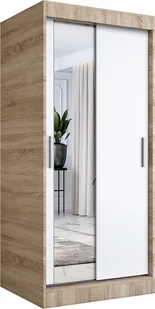 MKPOL Szafa przesuwna MODUO COMFORT 120 dąb sonoma/biała mat z lustrem po lewej