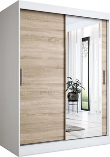 MKPOL Szafa przesuwna MODUO COMFORT 150 biała mat/dąb sonoma z lustrem po prawej