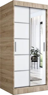 MKPOL Szafa przesuwna MODUO COMFORT 2 90 dąb sonoma/biała mat z lustrem