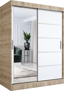 MKPOL Szafa przesuwna MODUO COMFORT 3 150 dąb sonoma/biała mat z lustrem