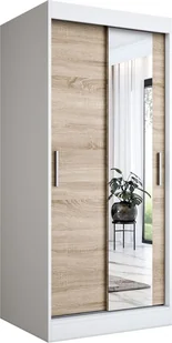MKPOL Szafa przesuwna MODUO COMFORT 90 biała mat/dąb sonoma z lustrem po prawej