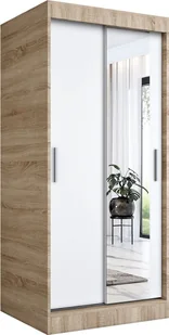MKPOL Szafa przesuwna MODUO COMFORT 90 dąb sonoma/biała mat z lustrem po prawej
