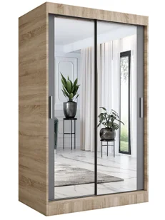 Duże lustro na froncie szafy optycznie powiększające przestrzeń. Uniwersalny design dopasowany do różnych aranżacji i wielu pomieszczeń: sypialni, pokoju młodzieżowego, przedpokoju czy salonu. Dwa układy wnętrza do wyboru: Lato (2 drążki) i Zima (1 drążek), z kompletem elementów potrzebnych do obu konfiguracji.