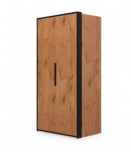 Szafa 2D z zestawu sypialnianego Loft z drzwiami uchylnymi dostępna w wersji lewej i prawej. Zestaw Loft powstał z połączenie płyty meblowej, imitującej drewno dębowe Lancelot z czarnym metalem. Metalowe elementy: ramka na lustrze, nogi łóżka, stolików nocnych, toaletki i komody oraz obrzeże wezgłowia pięknie komponują się z płytą imitującą drewno. Tapicerowane wezgłowie łóżka zapewnia wygodny odpoczynek.