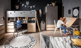 Najwyższa jakość bez kompromisów, która idzie ręka w rękę z najlepszym, ponadczasowym wzornictwem. Szafa Minimondo zapewni mnóstwo miejsca na wszystkie rzeczy dziecka. Szafa jest wyposażona w drążek oraz 4 regulowane półki ukryte za drzwiami wyposażonymi w zawiasy z systemem cichego domyku. Poniżej drzwi znajduje się pojemna szuflada, której front został wykonany z litego drewna brzozowego. Wykonane ze sklejki boczki szuflady poruszają się na niewidocznych metalowych prowadnicach z systemem cichego domyku.