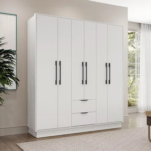 Szafa FEOVA to najlepsze rozwiązanie do przechowywania, które w optymalny sposób organizuje przestrzeń garderoby. Dzięki 6 drzwiom i 2 szufladom oraz 4 drążkom, szafa zapewnia wystarczająca ilość miejsca do ułożenie wszystkich ubrań i akcesoriów. Ciesz się eleganckim i ponadczasowym stylem szafy, który doskonale sprawdza się w każdej aranżacji wnętrza.