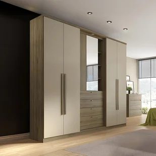 Szafa ISAK II w paru słowach: drążki umieszczone na różnych wysokościach, by zawiesić ubrania o różnej długości, oświetlone lustro, by zrobić makijaż lub wygodnie zawiązać krawat, minimalistyczny, nowoczesny styl, modne kolory. Nie zwlekaj i postaw na szafę ISAK II!