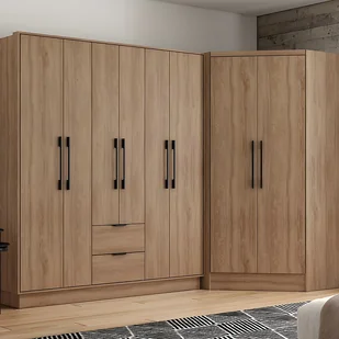 Szafa narożna FEOVA oferuje doskonały sposób na optymalną organizację garderoby. To aż 5 drążków, 2 szuflady oraz liczne półki ukryte za 4 parami drzwi, które zapewnią ci mnóstwo miejsca na wszystkie ubrania i akcesoria. Postaw na jej elegancki i ponadczasowy styl, który z łatwością odnajdzie się w każdym pomieszczeniu.