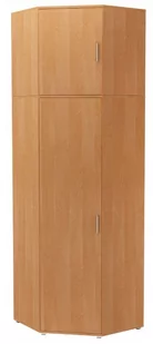 SZAFA NAROŻNA BODO 1D Z NADSTAWKĄ Szafa wykonana jest z dobrej jakości płyty laminowanej, którą cechuje zwiększona odporność na zarysowania, wysoka odporność na ścieranie oraz powierzchnia odporna na wilgoć (możliwość ścierania wilgotną gąbką). W drzwiach zastosowano metalowe zawiasy. Szafa sprzedawana jest w komplecie z nadstawą dzięki czemu jest dużo bardziej pojemna. CECHY: płyta laminowana metalowe zawiasy nadstawka WYMIARY: