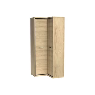 Szafa M-14 MEDIOLANNarożna, pojemna szafa dwudrzwiowa Mediolan do przechowywania ubrań. Mebel w środku w standardzie został wyposażony w drążek do wieszania ubrań, i górną półkę. Dzięki opcji dodatkowych półek zyskasz jeszcze więcej miejsca. Kolor naturalnego drewna oraz ciemne, ozdobne listwy w stylu loftowym nadają bryle charaketru. Mebel dostępny w komplecie z niskimi lub z wysokimi nóżkami.