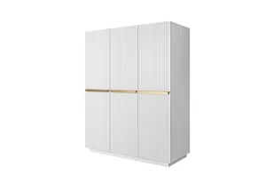 Szafa biała mat 150 cm z szufladami ryflowana złote uchwyty drążek Nicole
