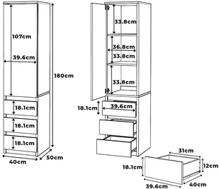 Szafa nowoczesna do przedpokoju sypialni wąska 3 szuflady 40cm dąb wotan