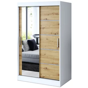 Szafa przesuwna RALF 120x200 Kolor korpusu: Biały mat Kolor drzwi: Dąb Artisan Drzwi lewe: Lustro Drzwi prawe: Listwy ozdobne Wykonana z płyty laminowanej o ...