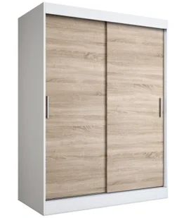 Biały + Dąb Sonoma. W ofercie posiadamy także inne kolory szafy : Dąb sonoma, Dąb Sonoma + Biały , Dąb Sonoma + Antracyt, Biały mat, Biały + Antracyt, Antracyt, Antracyt + Biały, Antracyt + Dąb Sonoma. 2 układy wnętrza do wyboru: Lato (2 drążki) i Zima (1 drążek).