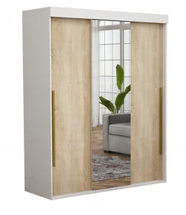 Szafa Przesuwna 3Drzwiowa ALLAM+Mix Biała+Sonoma Lustro ZłoteUchwyt 250x202
