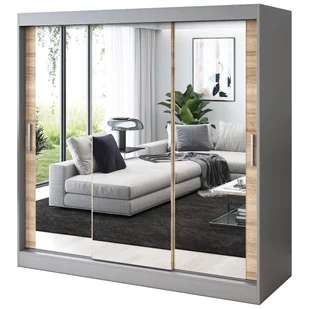 Szafa przesuwna KARL 200x200 Kolor korpusu: Antracyt mat Kolor drzwi: Dąb Sonoma Drzwi lewe: Lustro Drzwi prawe: Lustro Drzwi środkowe: Lustro Wykonana z pły...