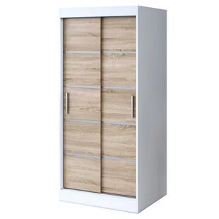 Szafa przesuwna NINA 90x200 Kolor korpusu: Biały mat Kolor drzwi: Dąb Sonoma Drzwi lewe: Listwy ozdobne Drzwi prawe: Listwy ozdobne Wykonana z płyty laminowa...