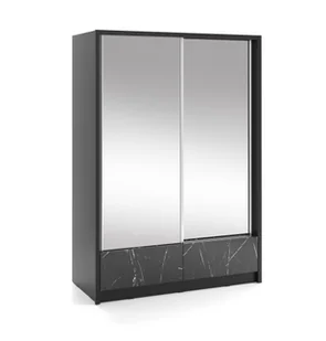 Szafa przesuwna na ubrania z lustrem do salonu Marmur T1 180 czarna biała