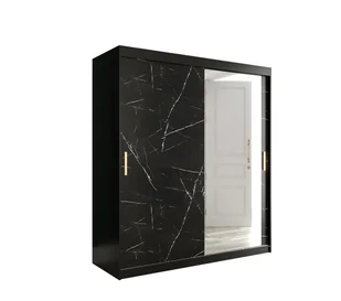 Szafa przesuwna garderoba MARMUR T2 180 x 62 x 200 cm Czarny + Marmur Czarny - Abiks Meble