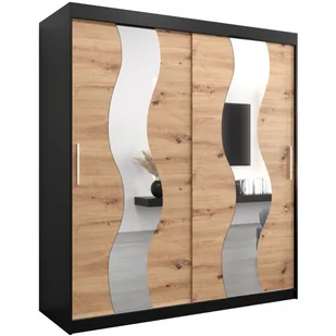 Szafa przesuwna garderoba z lustrem i półkami do sypialni Sewilla 180 artisan sonoma czarna biała