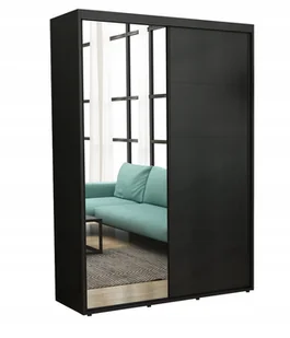 Szafa Przesuwna Iga Paski Czarne LUSTRO 140x242 Czarny Wyposażenie