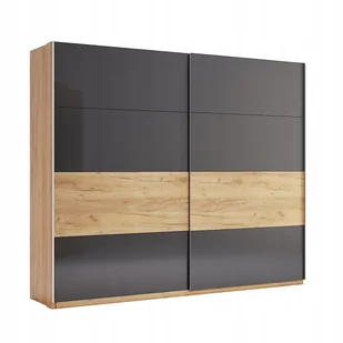 Stylowa i pojemna szafa do Twojej garderoby! Szafa przesuwna Matle o szerokości 250 cm w kolorze dąb/szary to doskonałe połączenie nowoczesnego designu z fun...