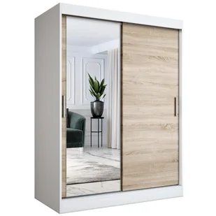 Szafa przesuwna MODUO COMFORT 150 biała mat/dąb sonoma z lustrem po lewej