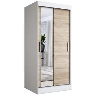 Szafa przesuwna MODUO COMFORT 90 biała mat/dąb sonoma z lustrem po lewej