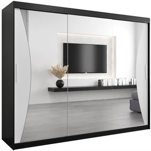 Szafa przesuwna trzydrzwiowa garderoba z lustrem i półkami Monaco 250 artisan sonoma czarna biała