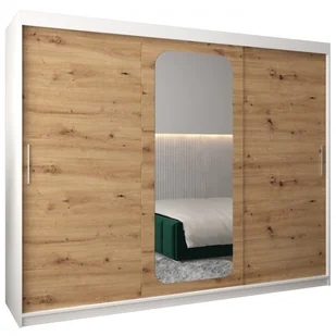 Szafa przesuwna trzydrzwiowa garderoba z lustrem i półkami PROMO T2 250 artisan sonoma czarna biała