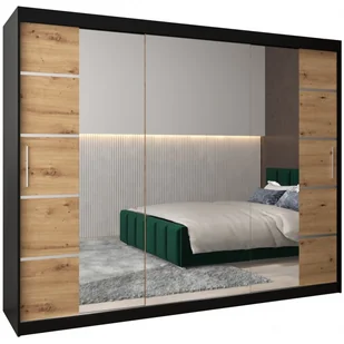 Szafa przesuwna trzydrzwiowa garderoba z lustrem i półkami Verona 4 250 artisan sonoma czarna biała