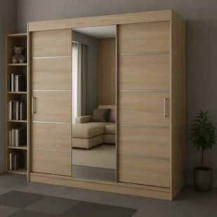 Pojemna szafa trzydrzwiowa RIO-3 180 z dużym lustrem oraz z systemem drzwi przesuwnych. Solidnie wykonana, funkcjonalna, elegancka, ułatwiająca codzienne uży...